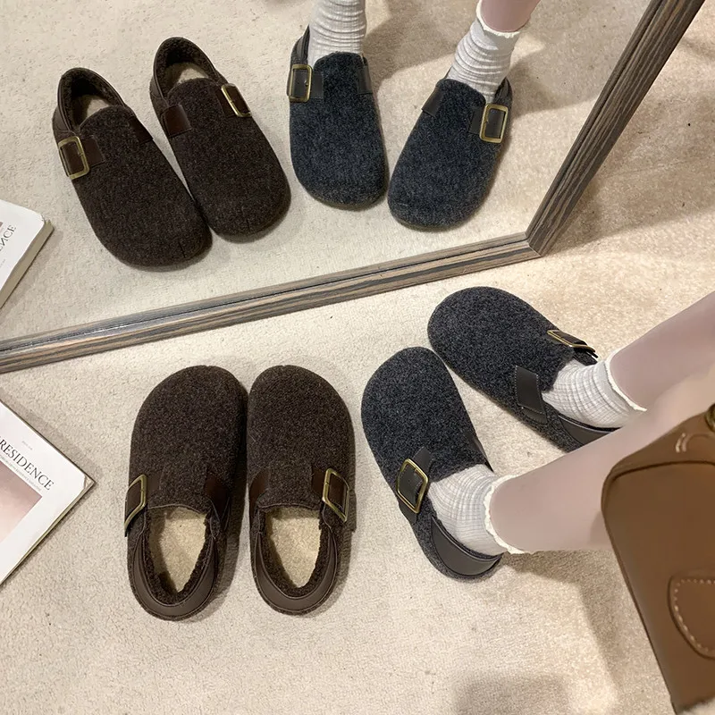 Schoenen Klompen Platform Verhoog de hoogte Instapper Creepers Slip-on Nieuwe winter Verhoogde interne gesp Instappers voor dames