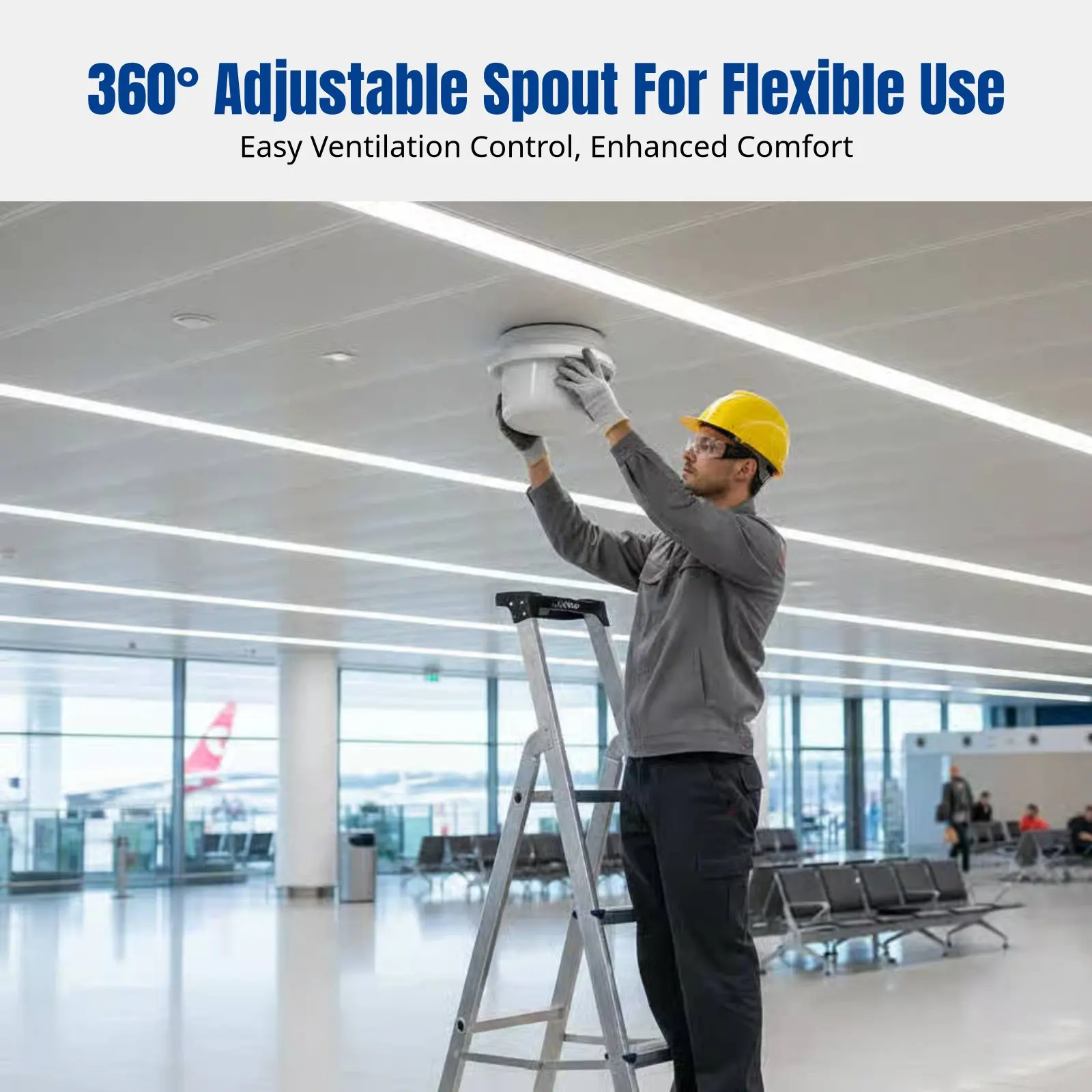 Draaibare sferische jet-spuitmond, verstelbare luchtuitlaat voor luchthavens, stations, HVAC