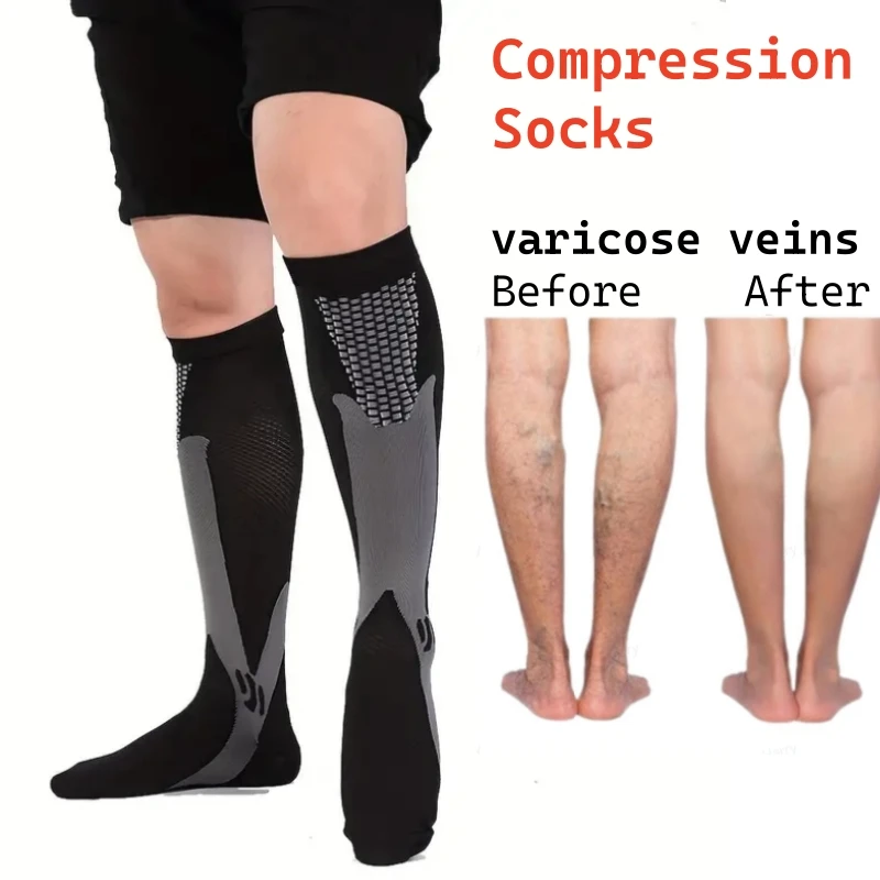 Unisex compressiesokken voor mannen en vrouwen Medisch diabetes Spataderen Sportsokken voor hardlopen Fietsen Reizen Vlucht Yoga
