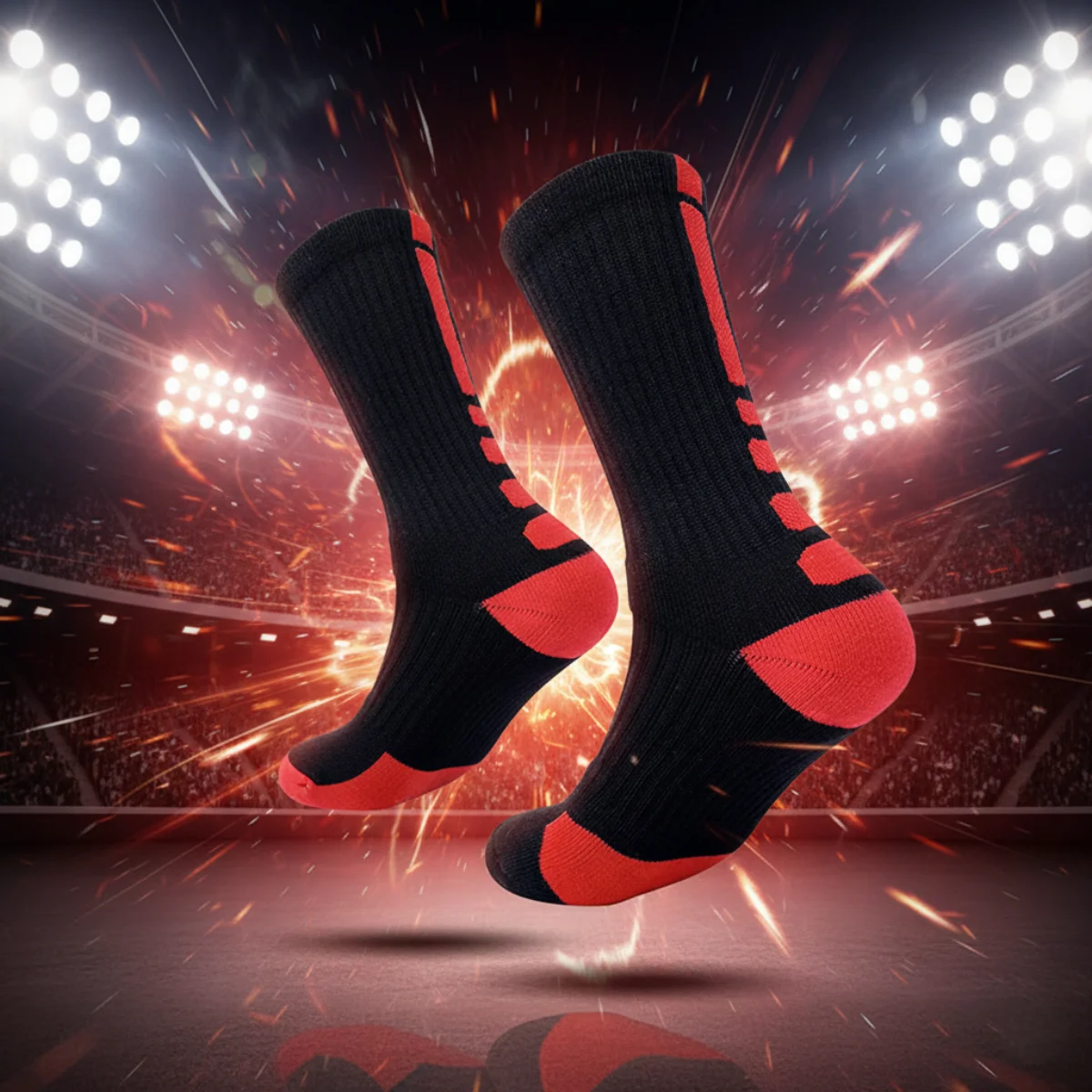 Verdikte sportsokken voor heren en dames, hardlooptrainingssokken met steunzool, ademend duurzaam antislip, zwart rood