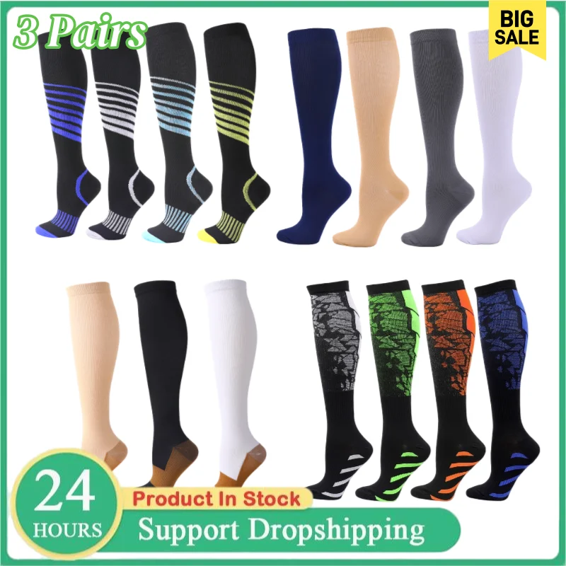 3Pairs Unisex Sport Compressie Sokken Knie Hoge Medische Spataderen Kousen Anti Vermoeidheid Pijnbestrijding Compressie Kousen
