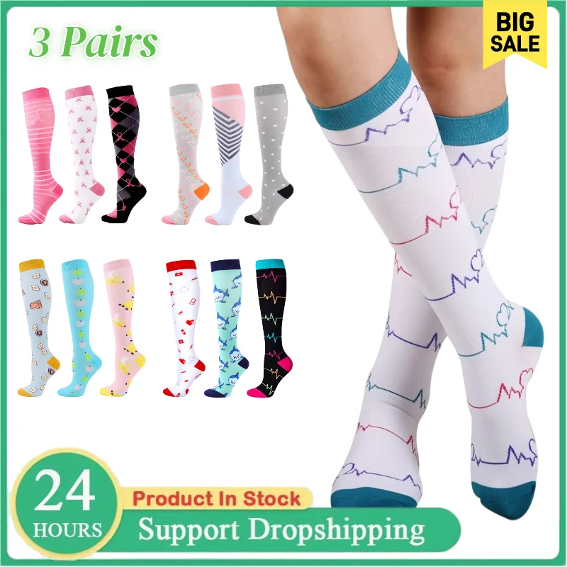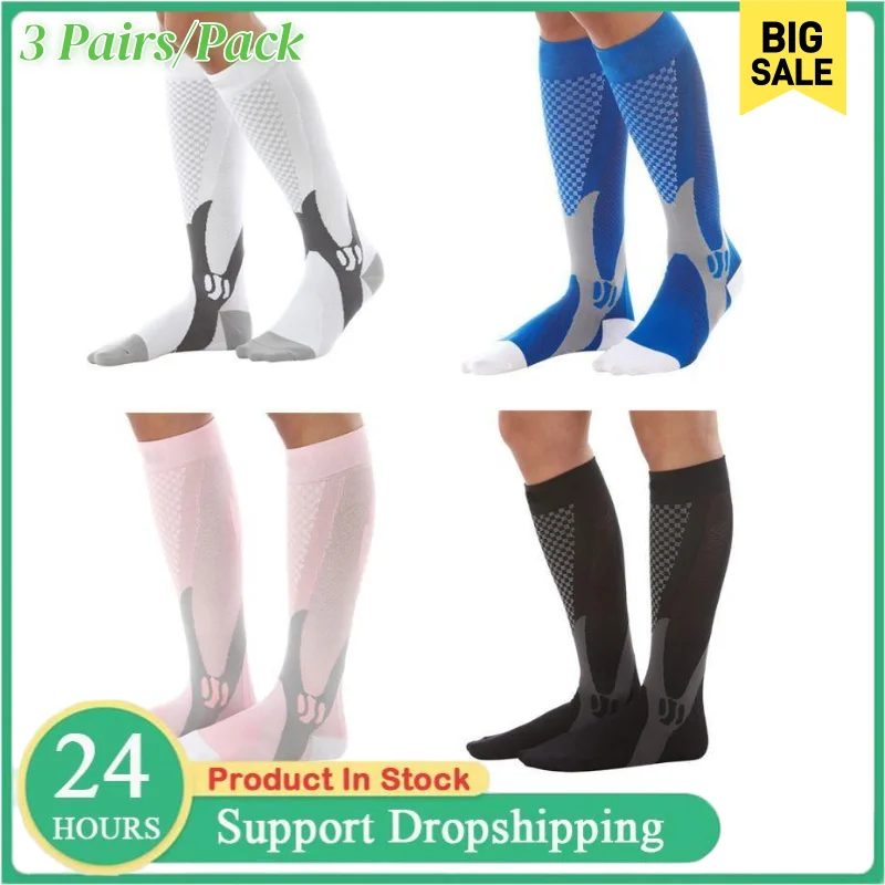 3Pairs Mannen Vrouwen Compressie Sokken Knie Hoge Medische Spataderen Kousen Anti Vermoeidheid Pijnbestrijding Compressie Kousen