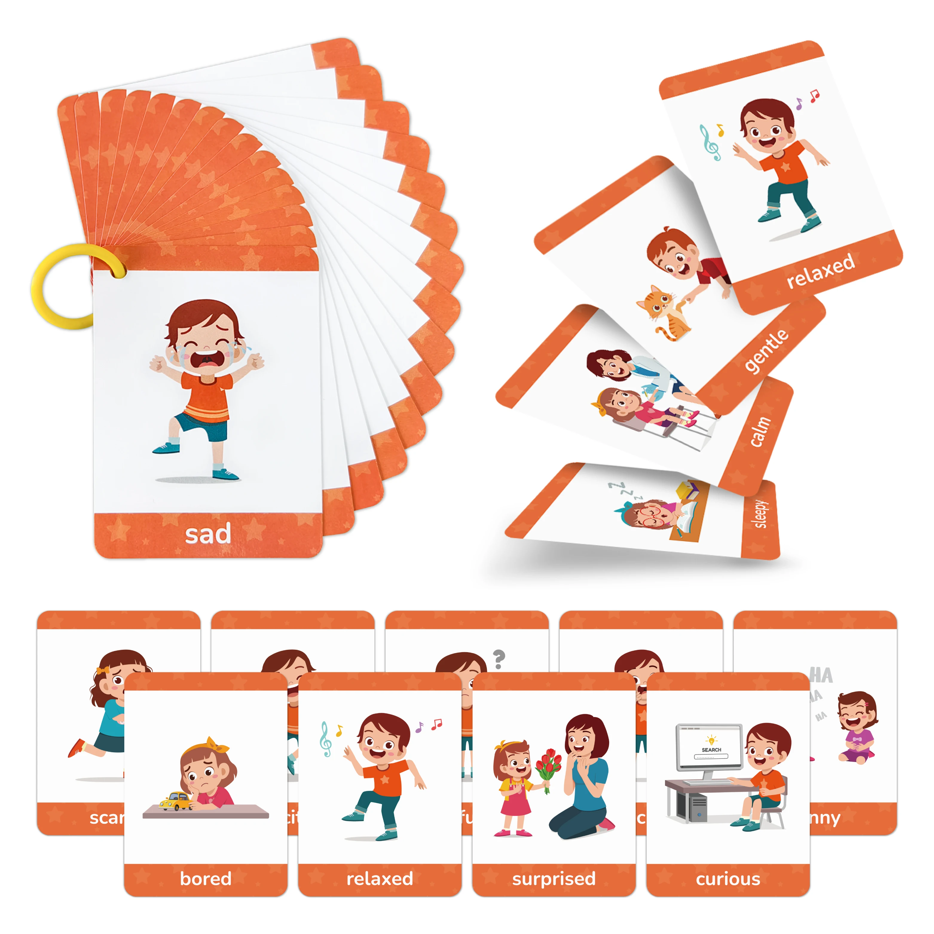 15 stuks meerdere soorten gedrags en emoties kaart, Woordenschatcognitiekaart voor kinderen, ideaal voor thuisschool en opvoeders