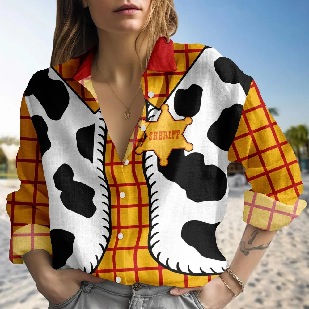 Halloween Sheriff Woody linnen look shirt, Woody kostuum cosplay, Disney Toy Story film vrouwen blouse, cartoon zomer shirt cadeau