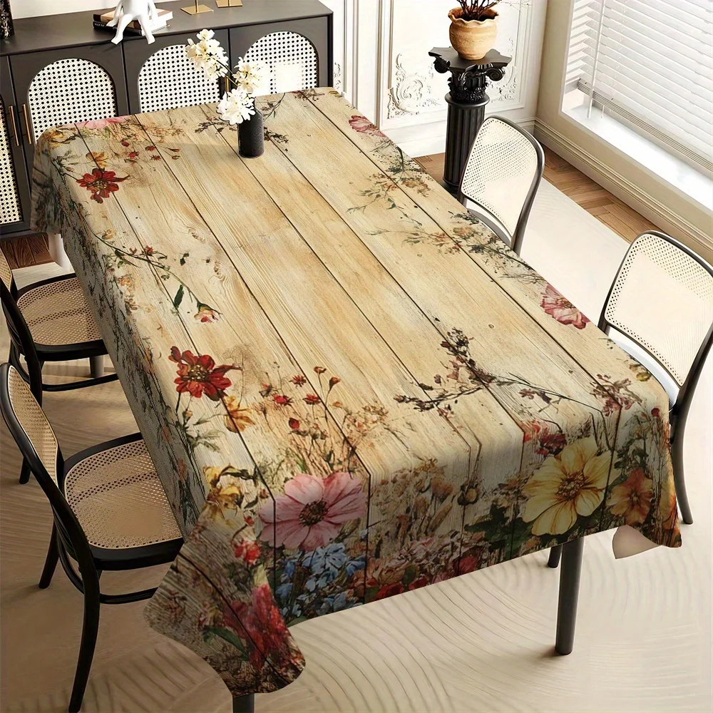 1 stuk Klassiek houtnerfpatroon, decoratief tafelkleed met vintage bloemenprint, geschikt voor restaurants, feesten en feestdagen.