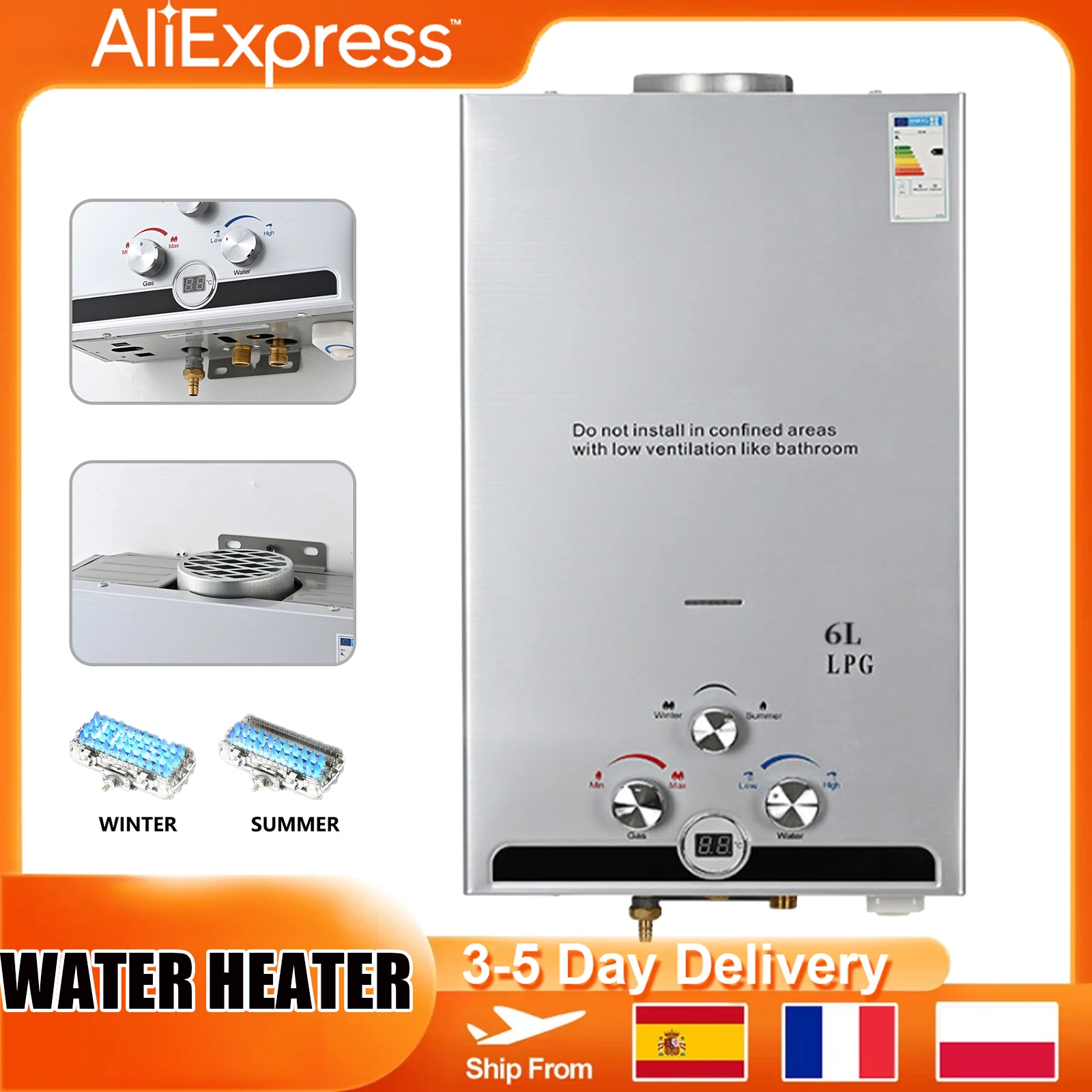 6L Gas Boiler Digitale Rvs Wandmontage Tankless Propaan Gas LPG Boiler Kits Thuis Camping Apparaat