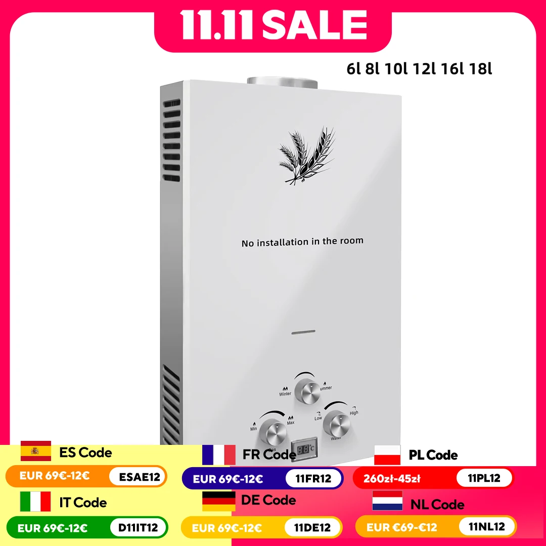 6L 12KW Boiler Instant Gas Boiler Propaan Gas Roestvrij Kom Huishoudapparatuur Outdoor Kachels Met Show Kit