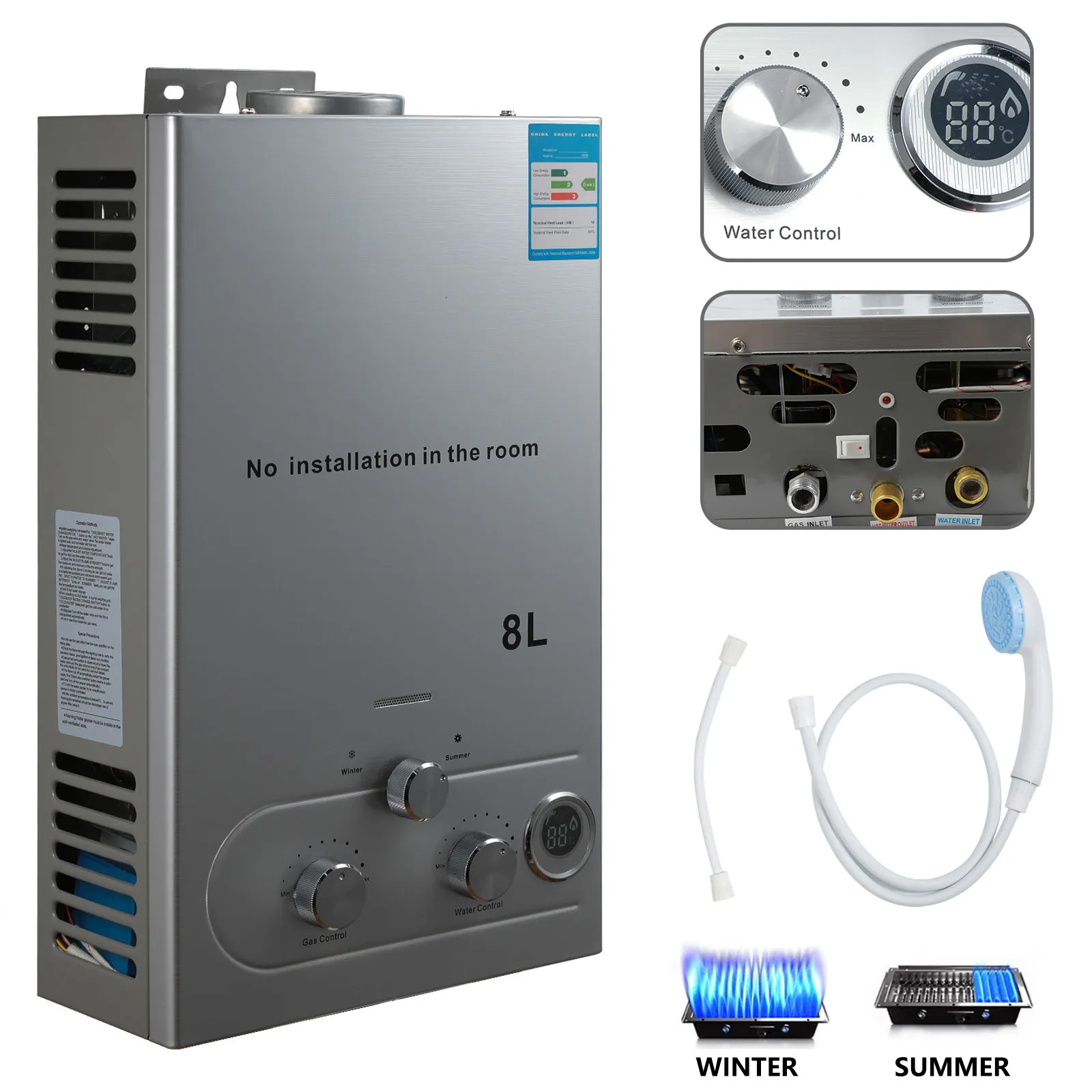 6l Lpg Gas Boiler Rvs Tankless Propaan Gas Lpg Boiler Met Douchekit Home Camping Apparaat