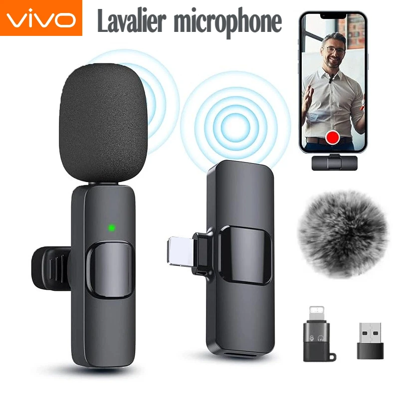 Draadloze lavaliermicrofoon, minimicrofoon, geschikt voor mobiele livestreaming, video-opname en opname