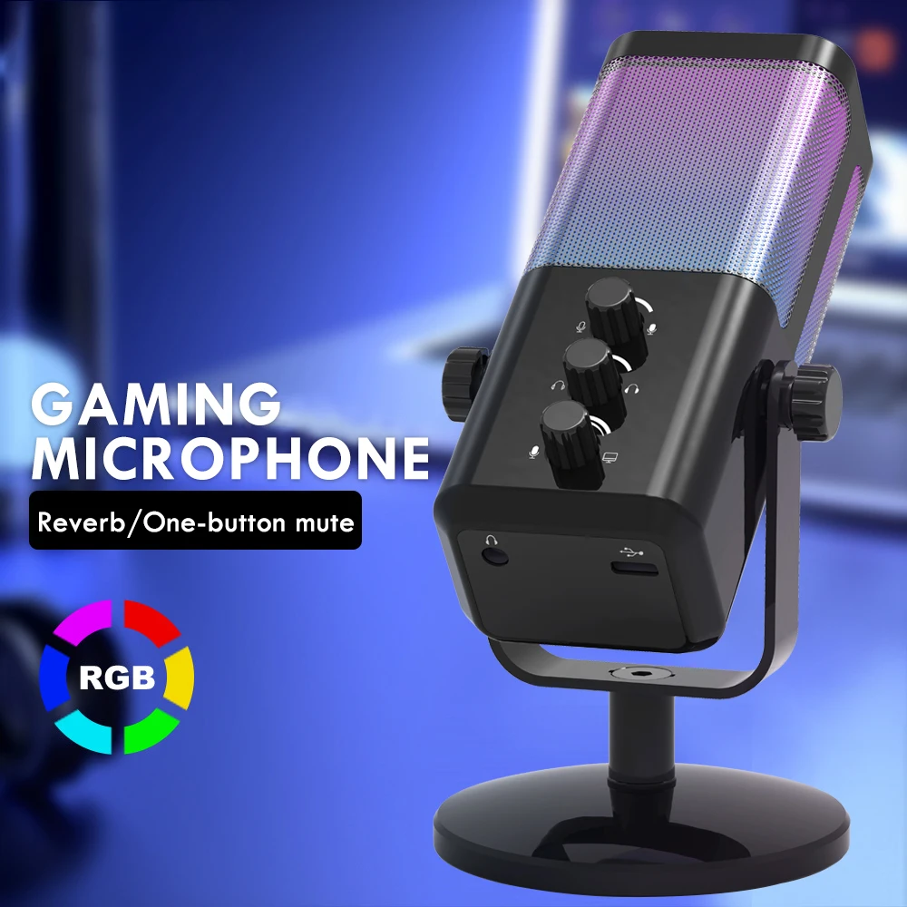 RGB Gaming USB-microfoon voor live microfoon Plug & Play Reverb-opnamemicrofoon voor singgaming, streaming, podcasting, YouTube