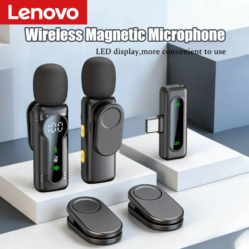 Lenovo magnetische ruisonderdrukkende draadloze microfoon, draagbaar met iPhone Android PC, must-have voor live streaming-interviews