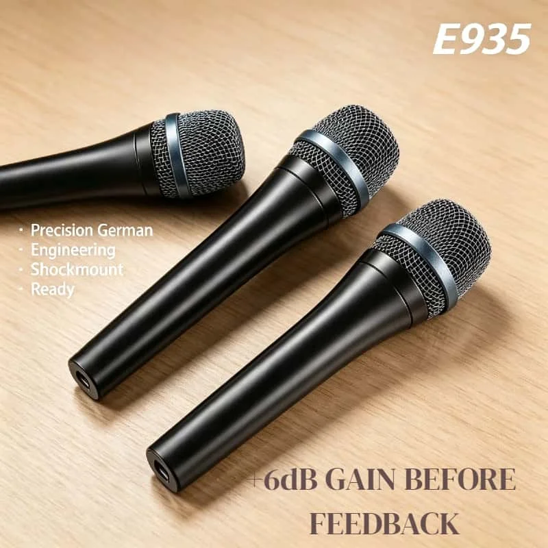 2026 Nieuwe E935 Professionele Cardioïde Dynamische Handmicrofoon 3-delige Set Podium Zangmicrofoon voor Karaoke Live Streaming Conferentie