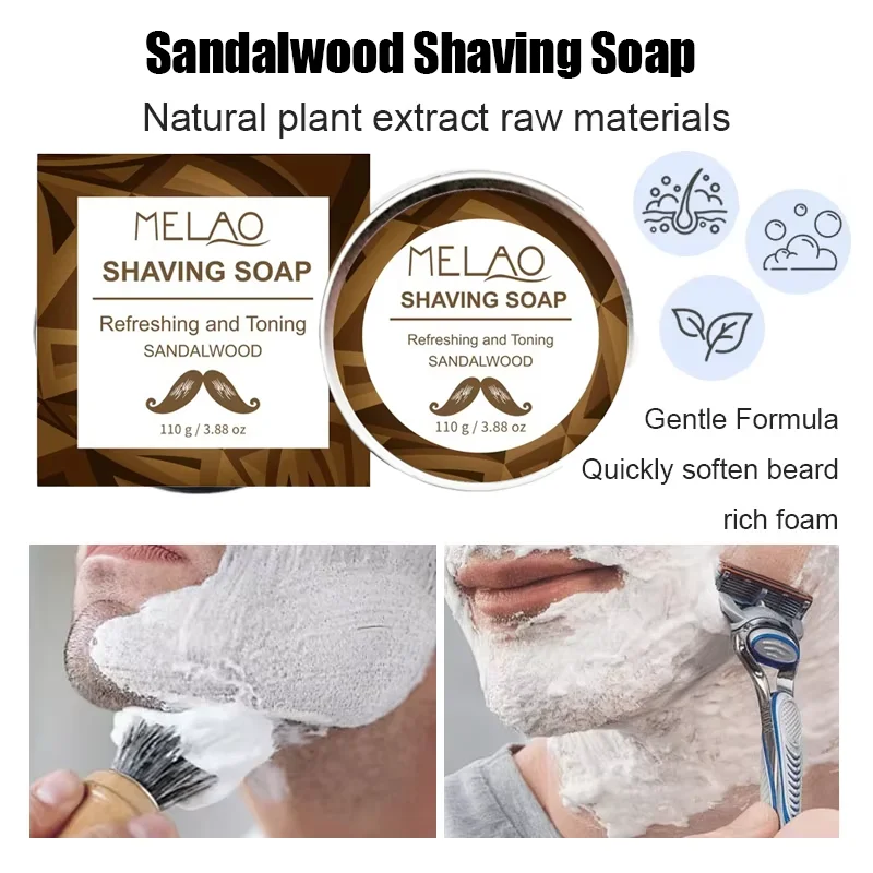 Traditionele 110g sandelhout scheerzeep - creëert rijk schuim voor glad scheren en gezichtsverzorging, professionele scheercrème voor mannen