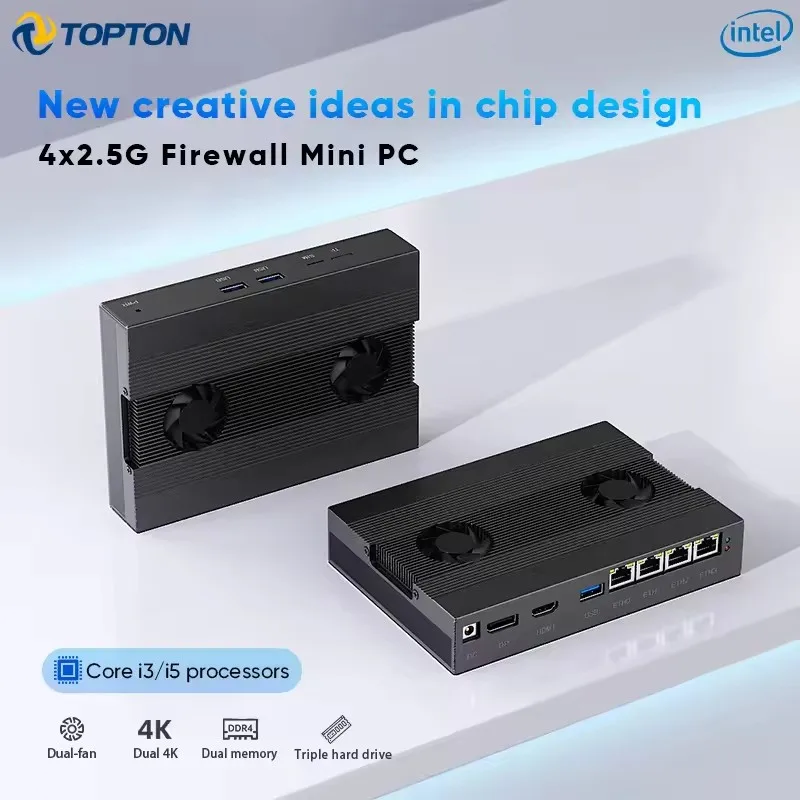 Topton Massief Aluminium Firewall Mini PC NAS 4x2.5G LAN Intel i5-8250U i3-8130U 2xNVMe SATA3.0 TF SIM pfSense Proxmox Home Server