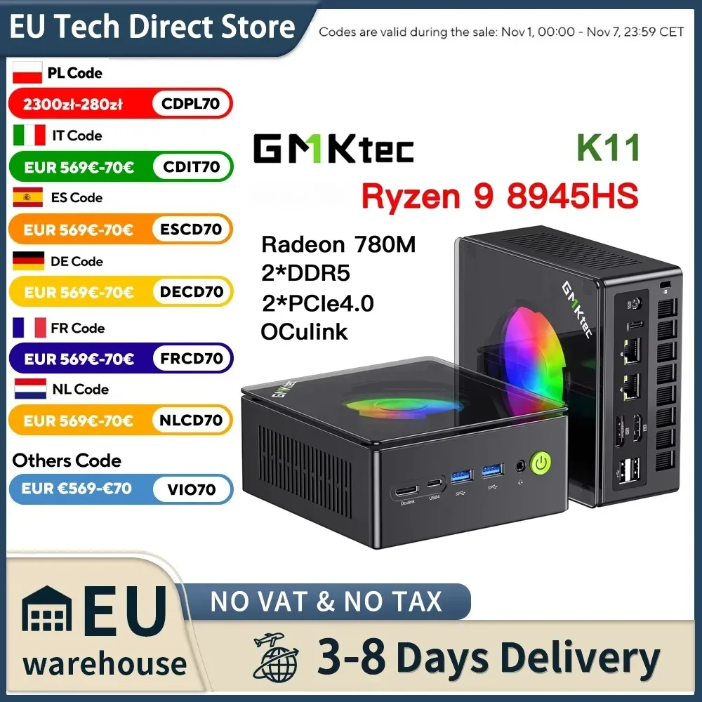 GMKtec K11 Gaming Mini-pc | AMD Ryzen 9 8945HS, Radeon 780M | 32GB DDR5 5600MHz, 1TB SSD | Windows 11 Pro, WIFI6 BT5.2