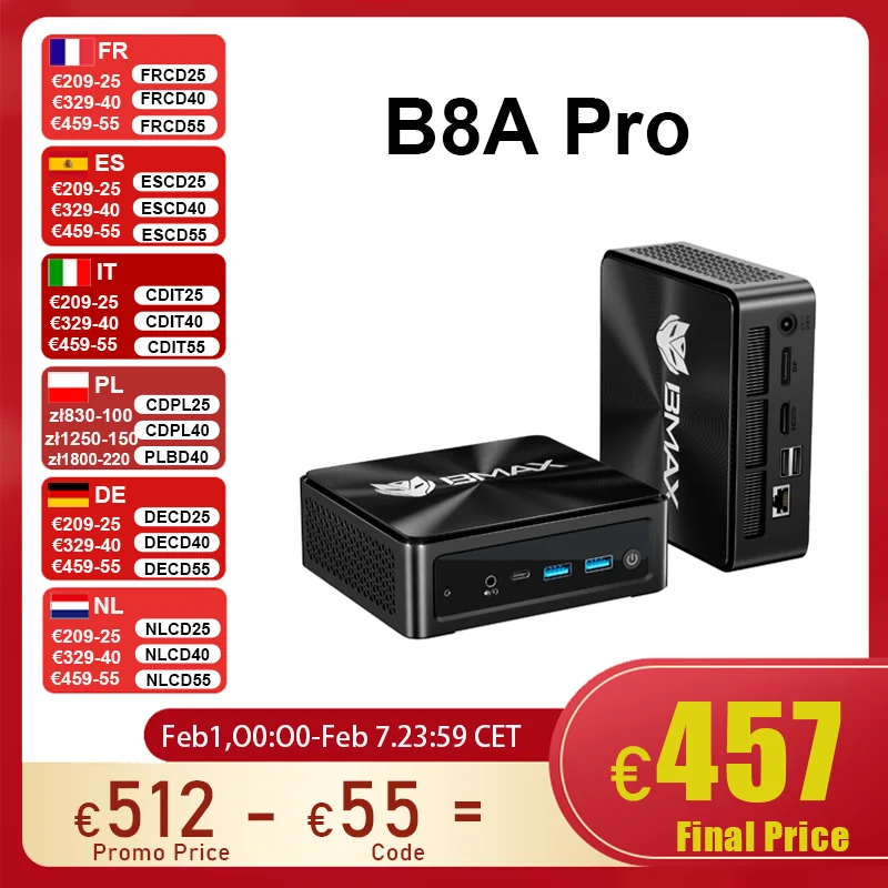 BMAX B8 A Pro AMD Ryzen 7 8745HS Processor AMD Radeon 780M 16GB 512GB SSD Windows 11 WiFi Bluetooth USB HDMI Type-C