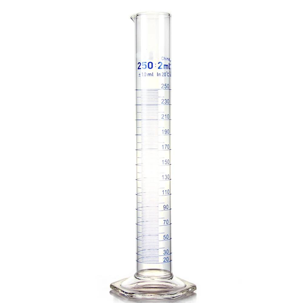 250 ml maatcilinder met uitloop en afstuderen met glazen zeskantbasis Laboratoriumchemieapparatuur