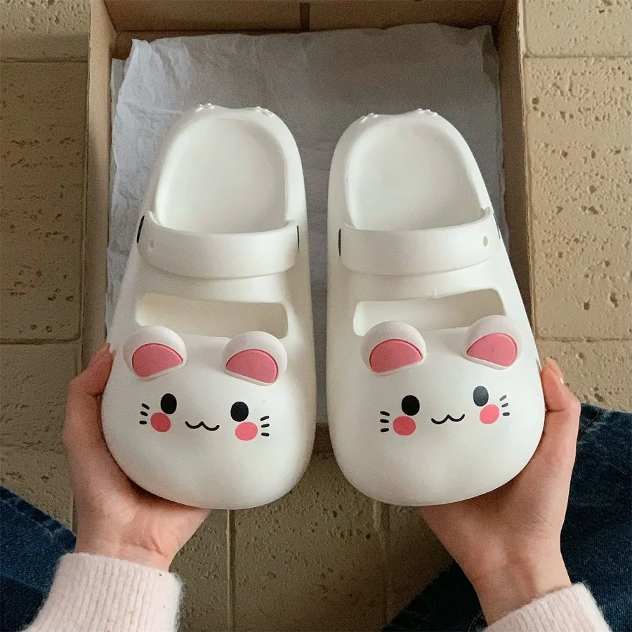 Zomersandalen voor dames, strandsandalen, pantoffels, nieuwe dames slippers, gesloten teen muiltjes 2026, schattige kattenpantoffels