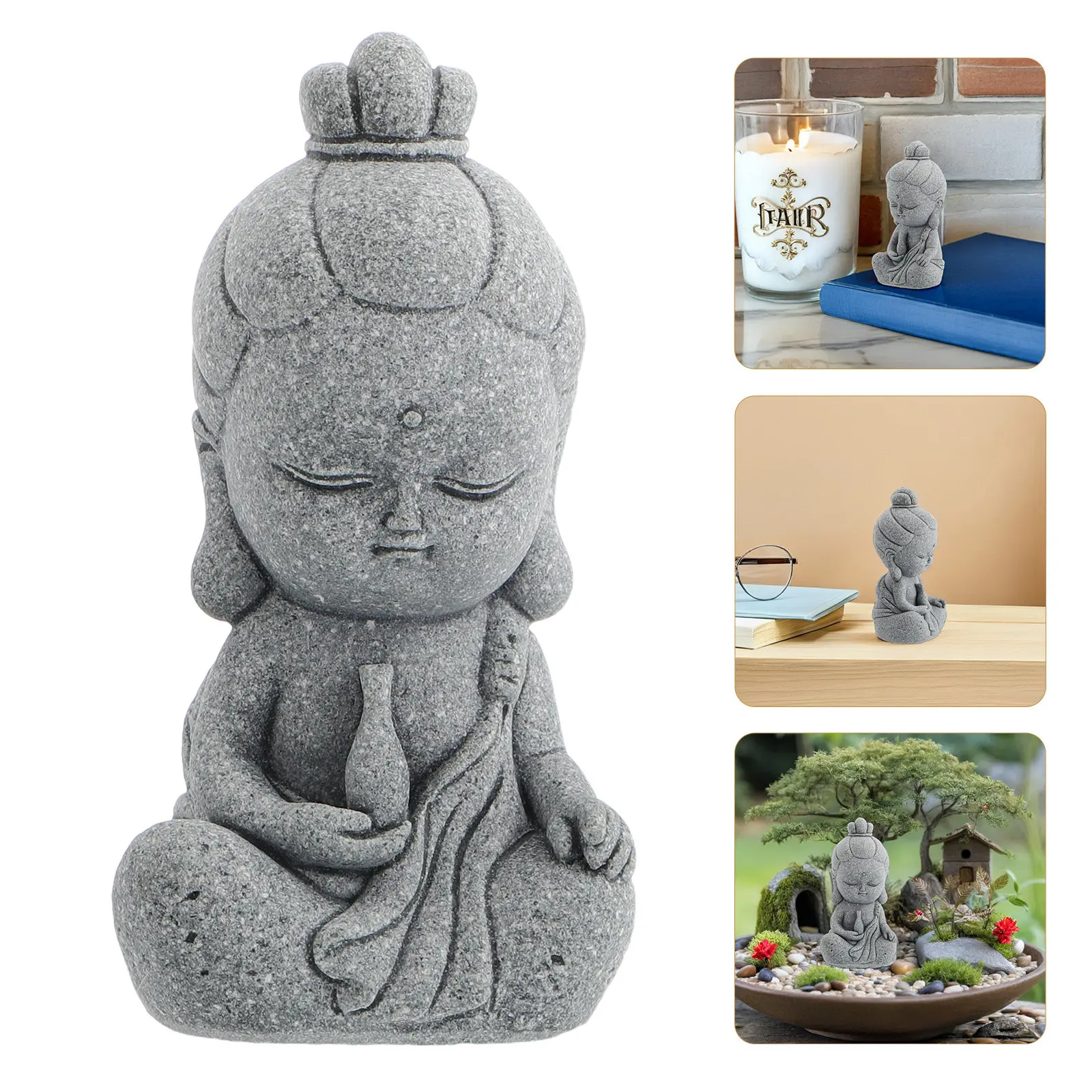 Gemaakt mini Kwan Yin Boeddha-stenen beeldje voor tuindecoratie, entree, kleine sculptuur, Aziatische decoratie, kalmerend, spiritueel.