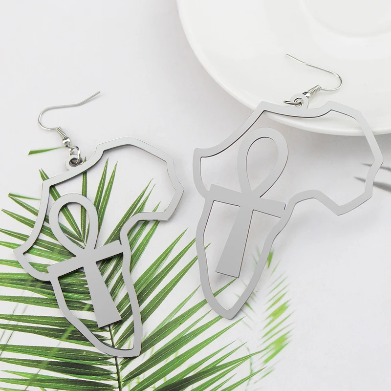 Afrikaanse kaart grote oorbellen vrouwen mannen overdrijven grotere oorbel Stud Afrika ornamenten traditionele etnische roestvrijstalen sieraden