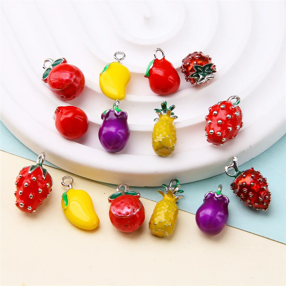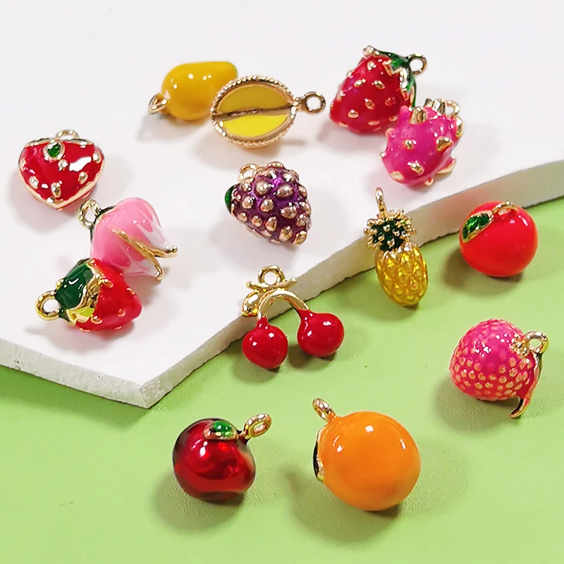 6pcs Emaille 3D Fruit Mango Persimmon Aardbei Hanger DIY Dames Sieraden Armband Oorbellen Decoratie Materiaal Accessoires