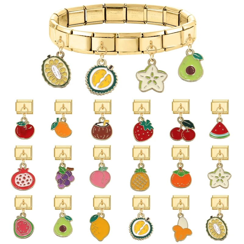 Nieuwe 1PC Fruit Cherry Watermeloen Mango Ananas Goud Kleur Hanger Italiaanse Charm Links Fit 9mm Armband Vrouwen DIY Maken Sieraden