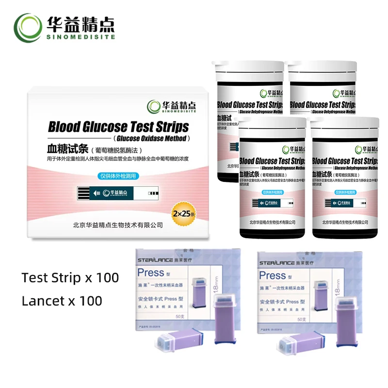 100 stks H1 bloedglucoseteststrips voor GLUPAD 818 glucometer met 100 stks lancetten FAD-GDH voor Glucosa Medidor Glucometro Kit