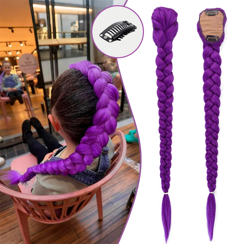KPop Demon Hunters Rumi Kostuum Kapsel 26 inch Lange Paardenstaart Pruik met Clips Synthetisch Gevlochten Paars Haar voor Kinderen Meisjes