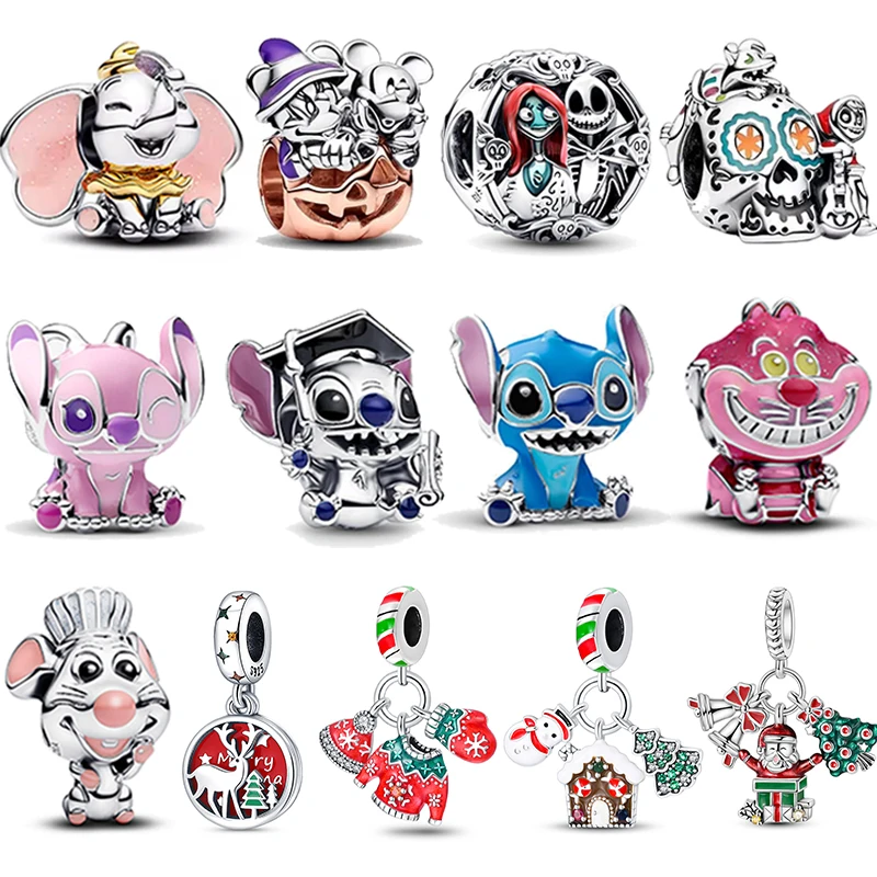 925 Sterling Zilver Disney Cheshire Cat Dumbo Charm Kralen Originele Vrouwen Armband Bangles DIY Hanger Halloween Sieraden Hot Gift