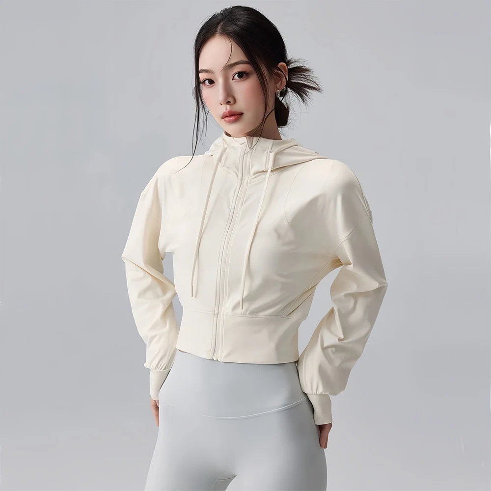 Hardloopjack met capuchon voor dames Fietsjas Yoga Joggingshirt Panty's Buitensporten Gymkleding Hardloopkleding Sportkleding