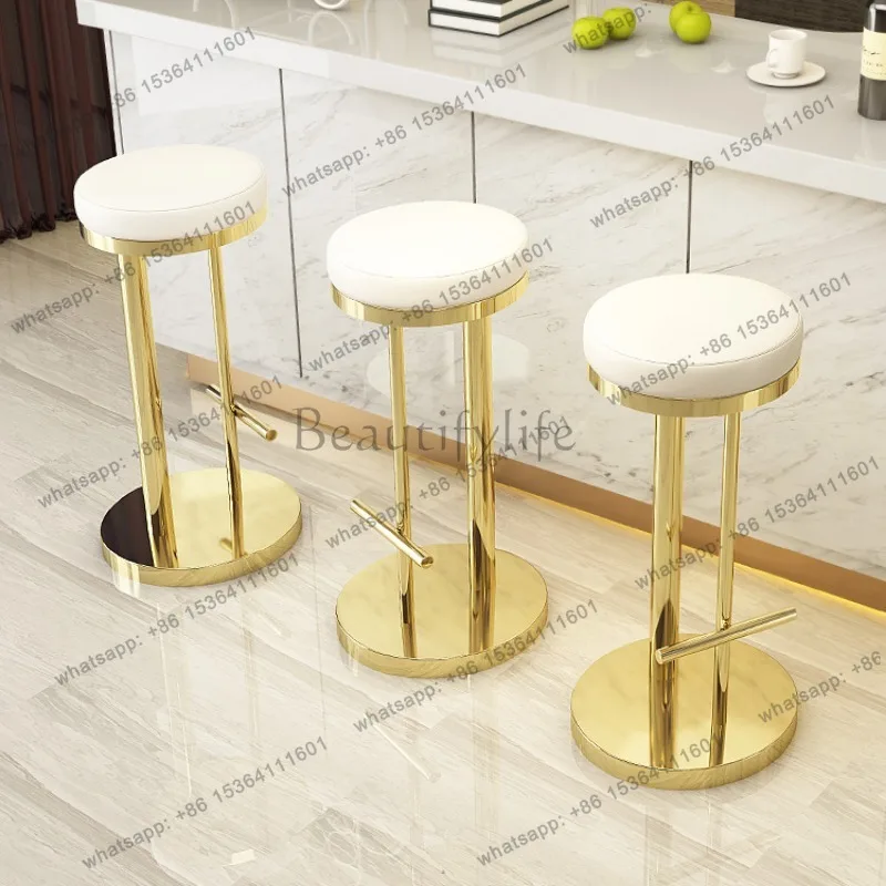 Luxe gouden barkrukken Draaibaar Receptie Slaapkamers Balie Barstoelen Rond Comfortabel Restaurante Muebles Interieurdecoraties