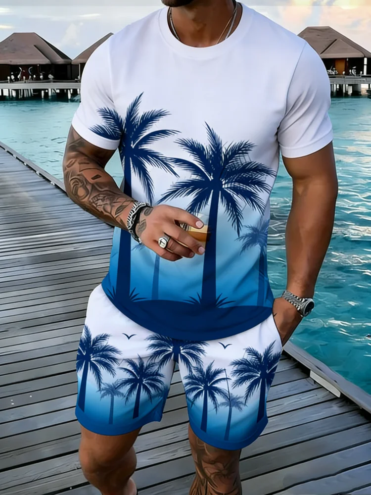 Populaire T-shirtsets met kokospalmprint Hawaii-stijl T-shirts Outfits Zomervakantie Tweedelige sets Heet verkoop herenkleding