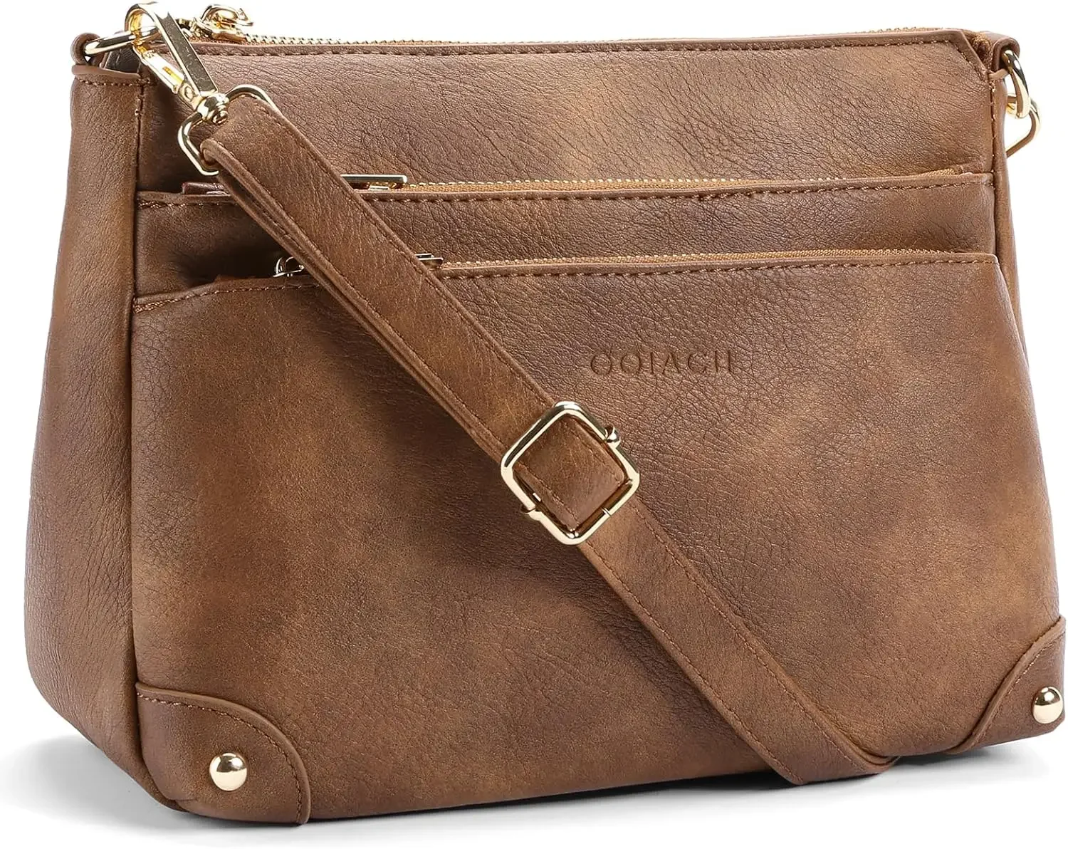 GOIACII Crossbodytassen voor dames, kleine schouderhandtassen, tas met meerdere ritsvakken van zacht leer