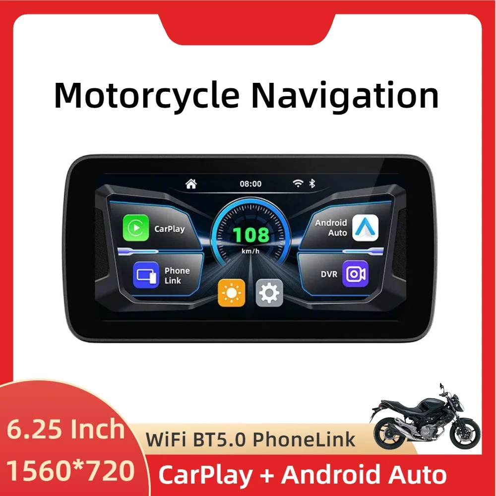 6,25 inch snelsluiting motorfiets GPS-navigatie IP67 optionele dashcam voor/achter dubbele lens, draadloze CarPlay Android Auto
