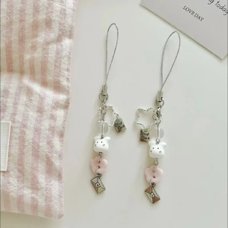 【 Een geluksroze konijn】 Idol dezelfde keramische konijn telefoonketting ster hanger tas hanger sleutelhanger