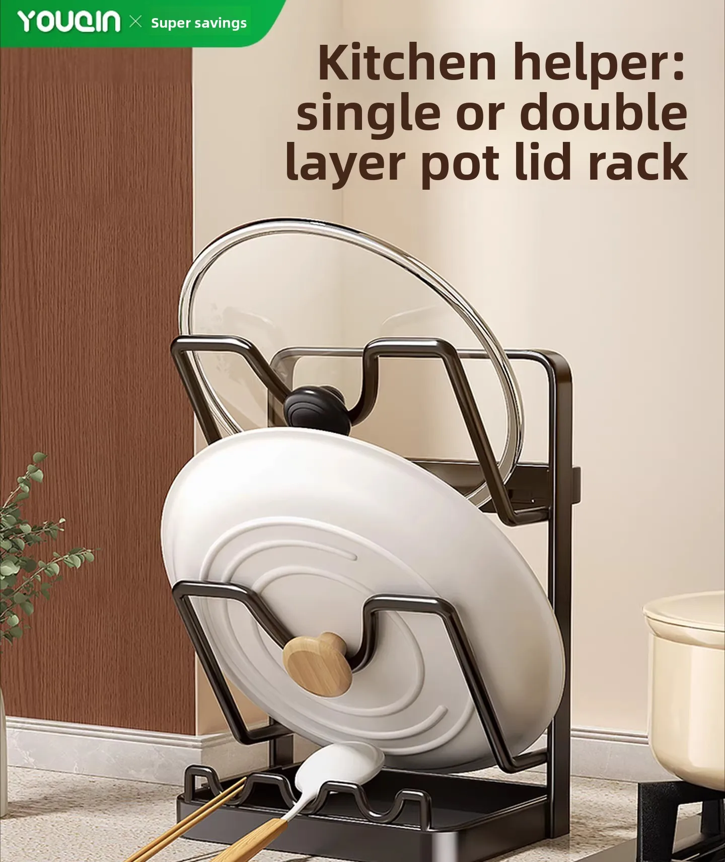 Potdekselrek, keukenwerkbladrek, huishoudelijk spatelrek, placer, houddeksel, afvoeropbergrek