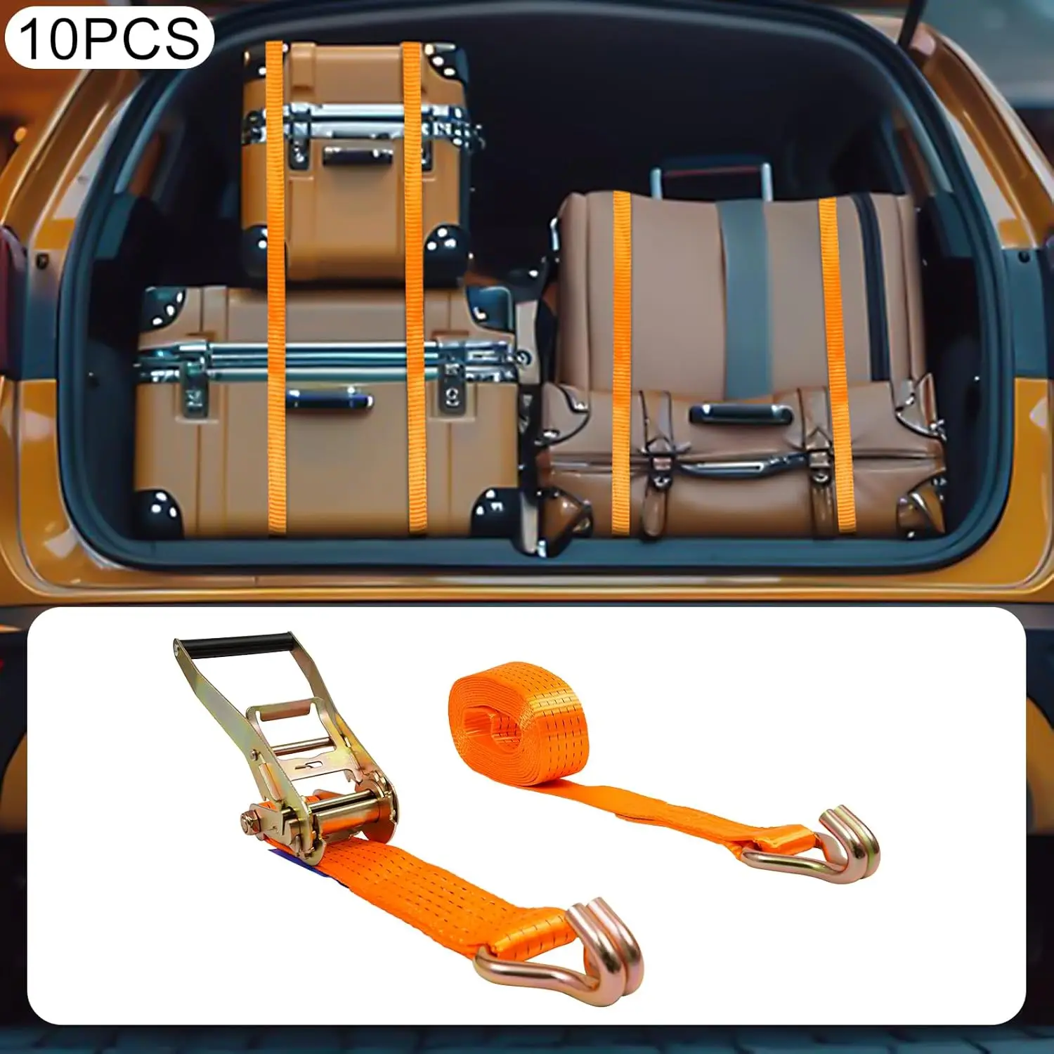 10 dubbele haak-ratelbanden, 50 mm x 8 m/10 m zware ratelspanbanden voor aanhangwagens, auto's, bagage - 5 ton draagvermogen (8 m)