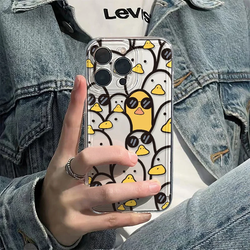 Leuke Cartoon Duck Case Meisjes Voor IPhone 17 Pro Max 17 Air 16e 15 11 12 13 14 16 Pro Max X XR XS Speciale Stijlvolle Beschermhoes