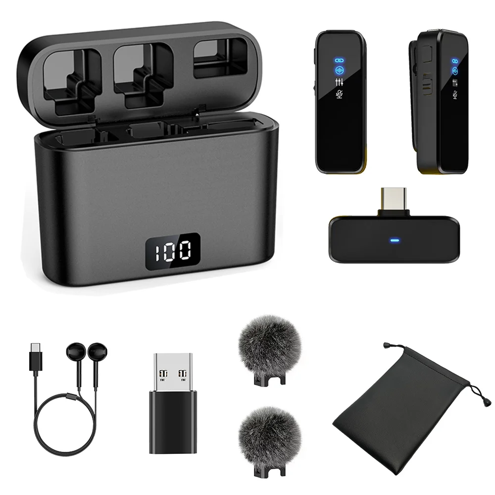 Lavalier draadloze microfoon professioneel met oplaaddoos en ruisonderdrukking voor studio-opnames