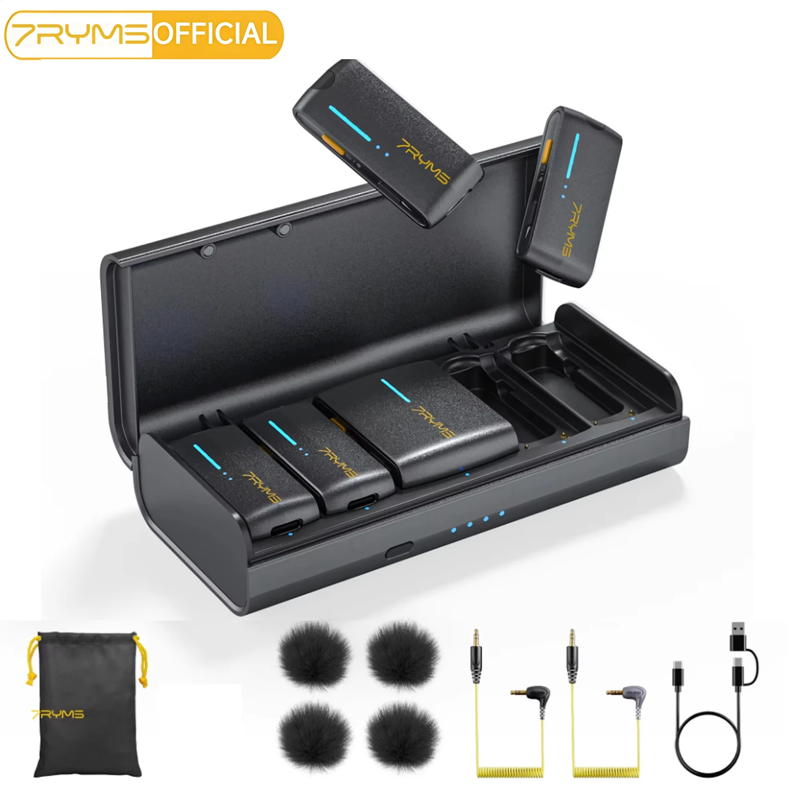7Ryms Iray Dw40 Draadloze Lavalier Microfoon Met 4 Zenders, 48Khz/24bit Opname, Ai Denoise Voor Camera, Smartphone En Pc