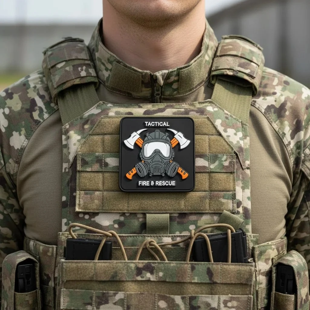 Tactische Brandweer & Reddings PVC Patch 3D Rubber Brandweerman Gasmasker Gekruiste Bijlen Badge voor Rugzak Jas Uitrusting