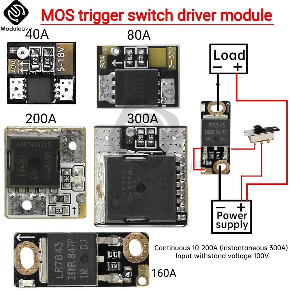 40A 80A 160A 200A 300A High Power MOS Trigger Switch Driver Module Transistor PWM Regelgeving Schakelaar Besturingskaart 5-18V