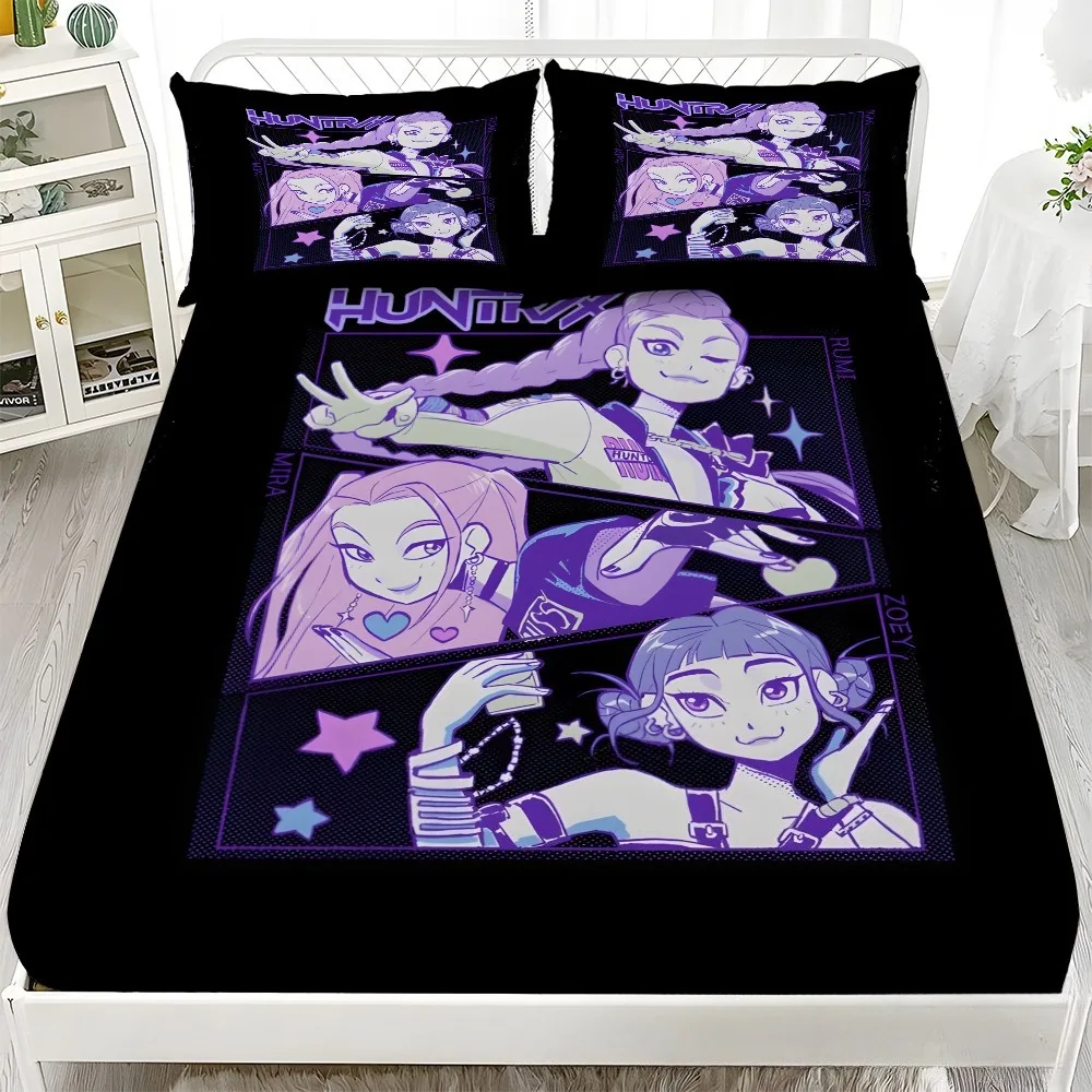D-Demon Hunters hoeslaken, cartoon lakens diepe zak 30 cm, anime laken met kussenslopen voor kinderen volwassenen