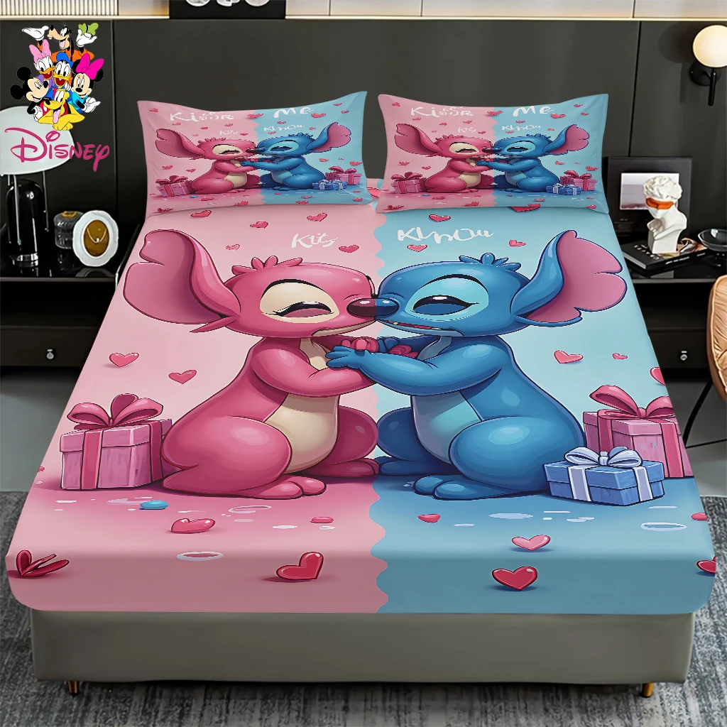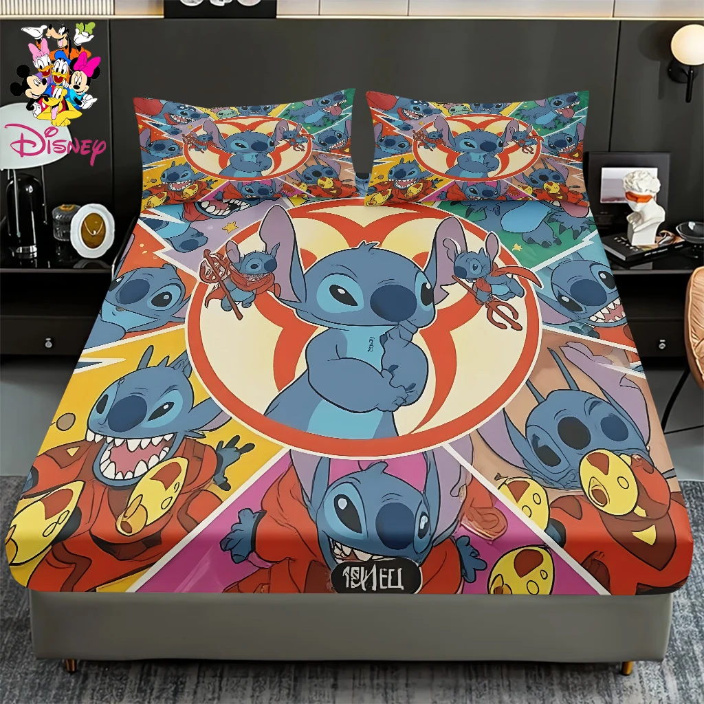 2/3 stuks Disney Stitch komische stijl hoeslakenset, retro Amerikaanse cartoon digitale print, huidvriendelijk en ademend beddengoed