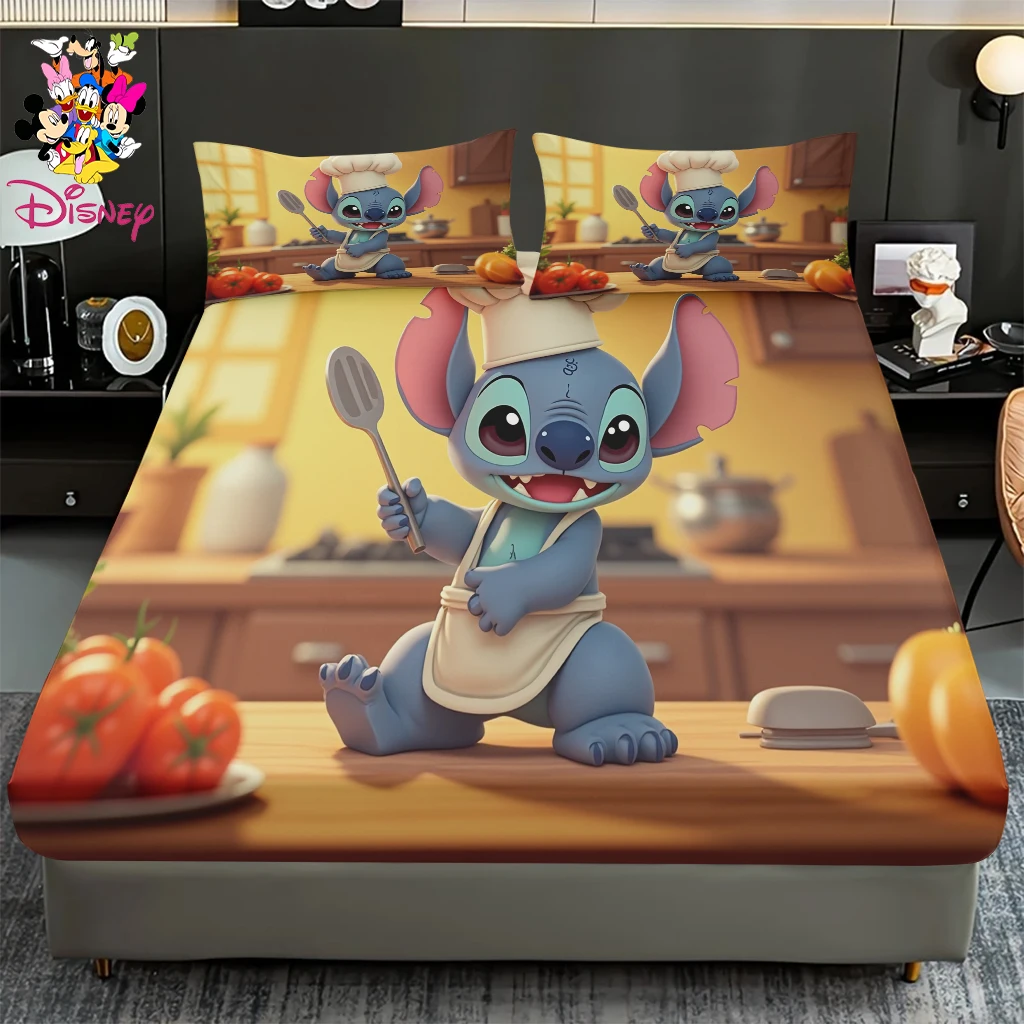 2/3pcs Disney Stitch Chef Hoeslakenset 100% Polyester Huidvriendelijk en Ademend Beddengoed Comfortabel Schattig Zacht