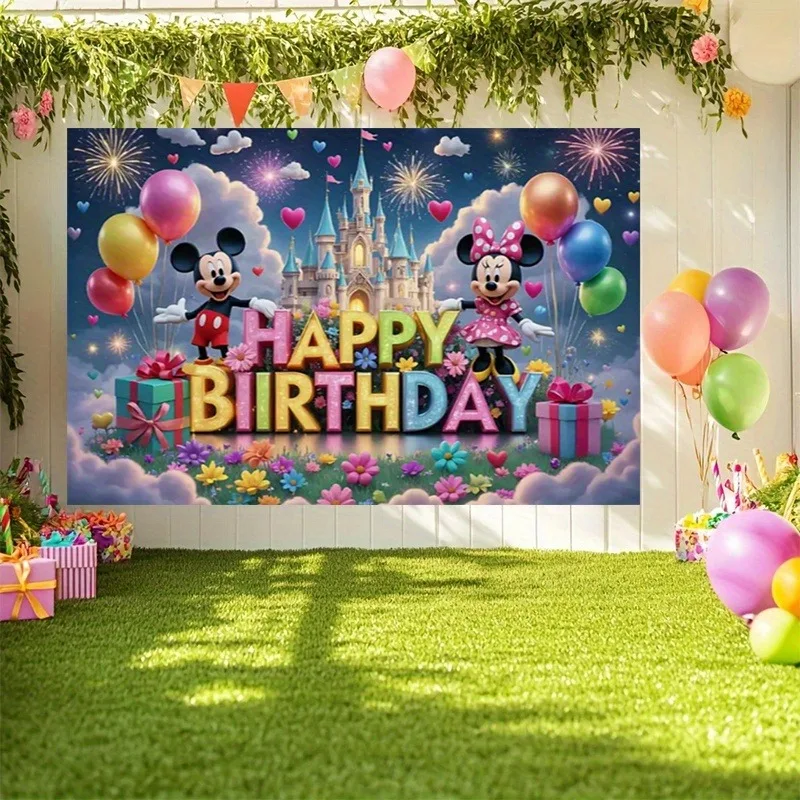 Disney Mickey & Minnie verjaardag kasteel achtergrond voor magische feesten wandtapijten, verjaardagsfeestje carnaval decoraties, geschenken
