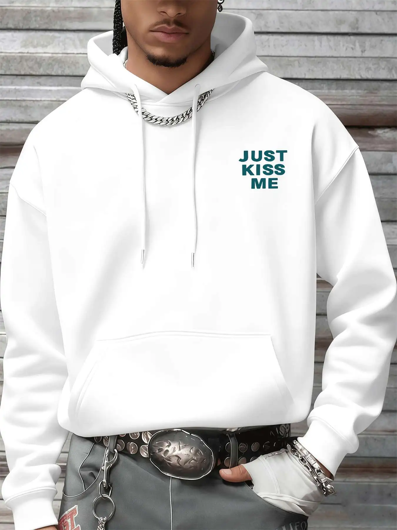 Just Kiss Me witte herenhoodie Premium stof, ontspannen pasvorm, straathiphop, comfortabel, statement print