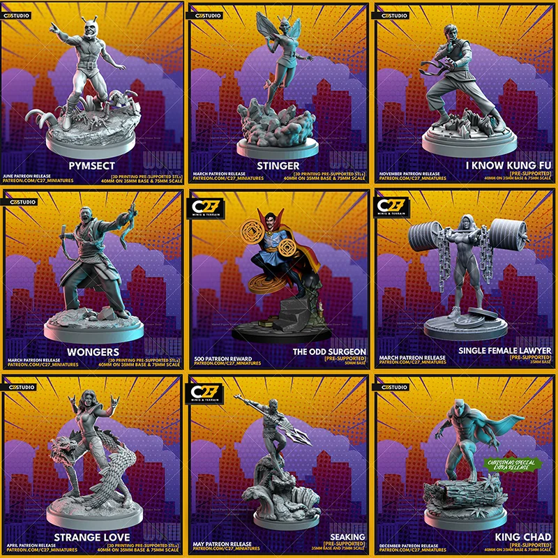 65MM 60MM 55MM 50MM 45MM 40MM 35MM WarChess Doctor Strange Wong Ant-Man Black Panther DIY GK 3D Hars Un-panited Doll