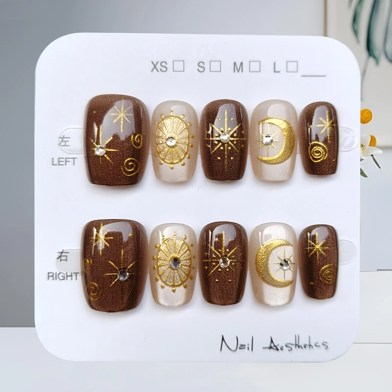10 stuks herfst en winter bruine serie 3D strass vergulde cat's eye nail art stickers druk op nagels temperament nep nagel
