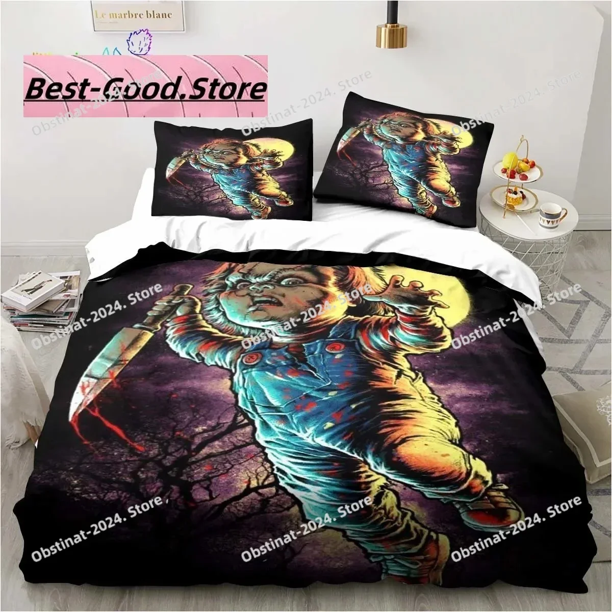 Horrorfilm Chucky beddengoedset bedrukt enkel dekbed dekbedovertrek dekbedovertrek kussensloop 3-delige sets kinderen volwassen grootte